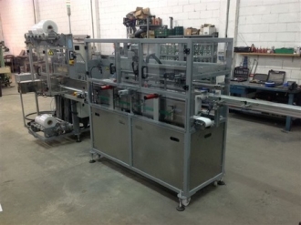 Máquina automática para el apilado de estuches y posterior retractilado de los mismos en grupos de distintas unidades.
